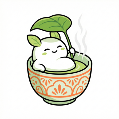 お茶の成分「テアニン」を解説。リラックス効果や腸管免疫の防衛機能を、可愛いキャラクターと共に理学療法士が紹介。